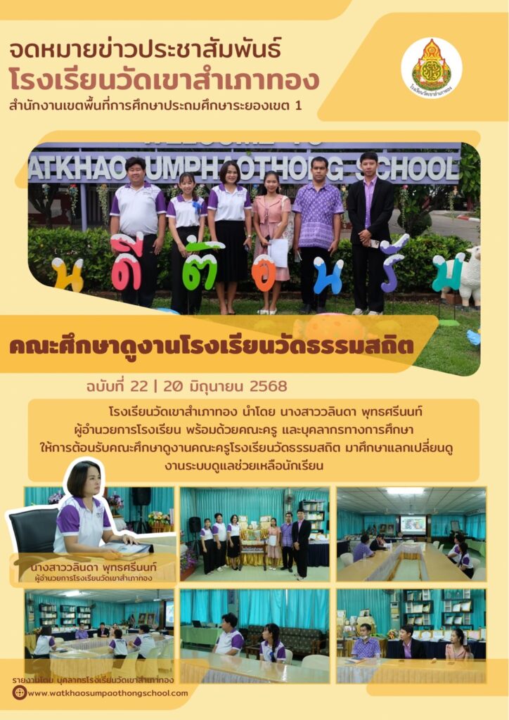 โรงเรียนวัดเขาสำเภาทอง นำโดย นางสาววลินดา พุทธศรีนนท์ ผู้อำนวยการโรงเรียน พร้อมด้วยคณะครู และบุคลากรทางการศึกษา ให้การต้อนรับคณะศึกษาดูงานคณะครูโรงเรียนวัดธรรมสถิต มาศึกษาแลกเปลี่ยนดูงานระบบดูแลช่วยเหลือนักเรียน