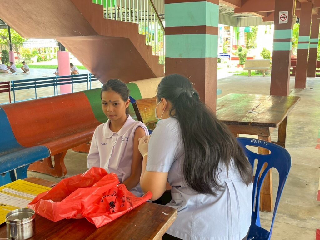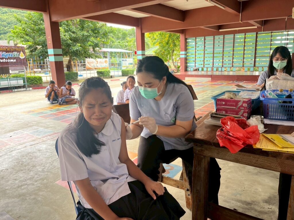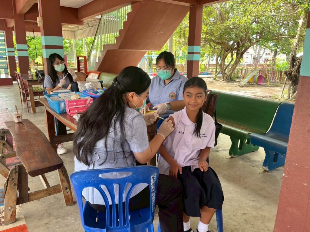 ทำการฉีดวัคซีนป้องกันมะเร็งปากมดลูก ให้แก่นักเรียนหญิงชั้นประถมศึกษาปีที่ 5