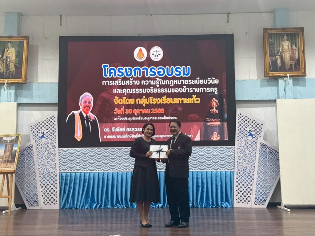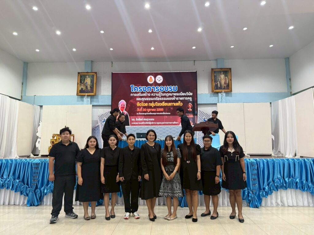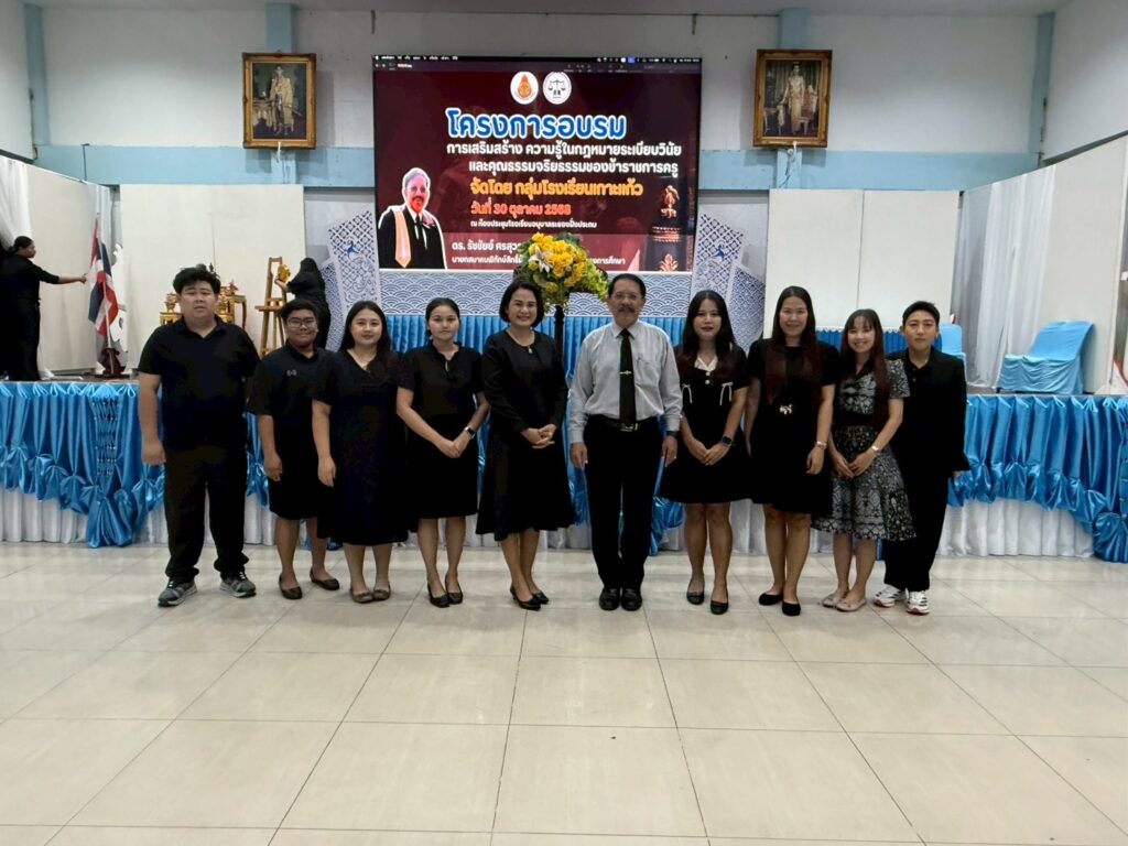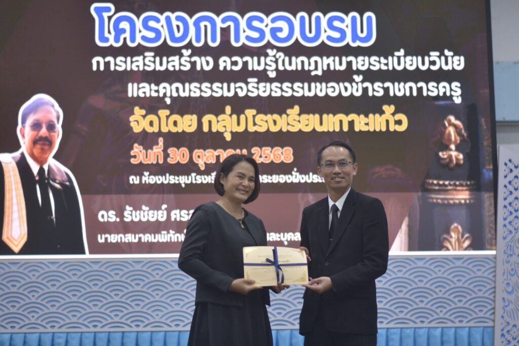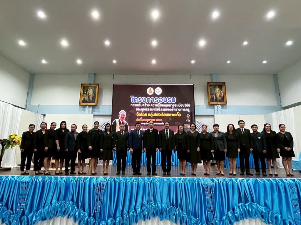 โรงเรียนวัดเขาสำเภาทอง นำโดย นางสาววลินดา พุทธศรีนนท์ ผู้อำนวยการโรงเรียนพร้อมด้วยข้าราชการครู เข้ารับการอบรม “การเสริมสร้าง ความรู้ในกฎหมายระเบียบวินัย และคุณธรรมจริยธรรมของข้าราชการครู” โดยได้รับเกียรติจาก ดร.รัชชัยย์ ศรสุวรรณ นายกสมาคมพิทักษ์สิทธิ์ผู้บริหาร ครูและบุคลากรทางการศึกษา มาเป็นวิทยากรบรรยายให้ความรู้เกี่ยวกับหลักกฎหมายทางการศึกษา ระเบียบวินัย และจรรยาบรรณวิชาชีพครู เพื่อเสริมสร้างความเข้าใจเชิงลึกและเป็แนวทางในการพัฒนาคุณภาพครูอย่างยั่งยืน จัดโดยกลุ่มโรงเรียนเกาะแก้ว ณ ห้องประชุมโรงเรียนอนุบาลระยอง