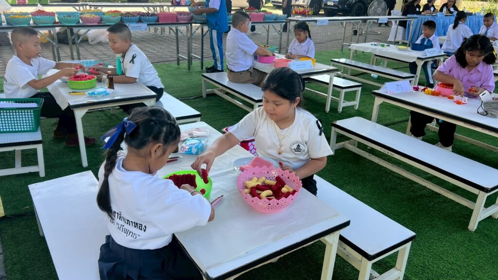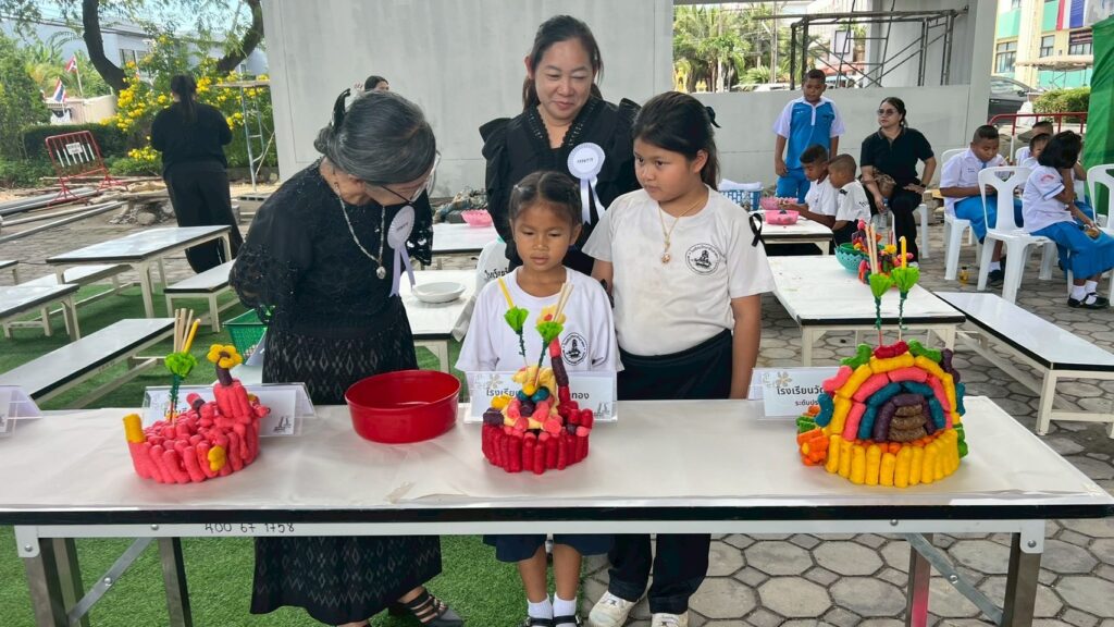 นักเรียนเข้าร่วมประกวดกิจกรรมการประดิษฐ์กระทงขนมปัง ณ เทศบาลตำบลบ้านเพ