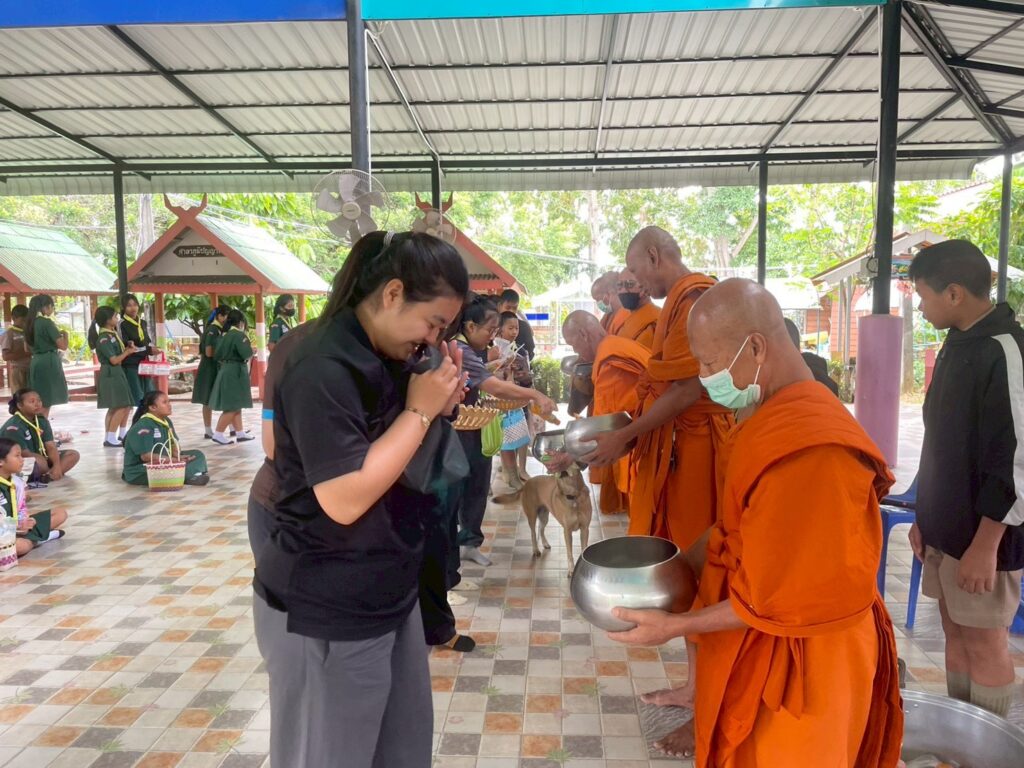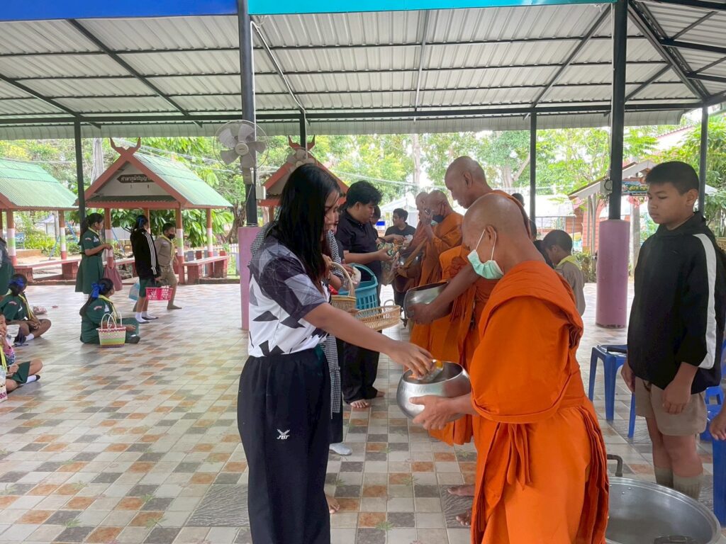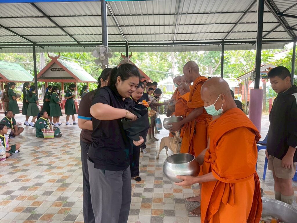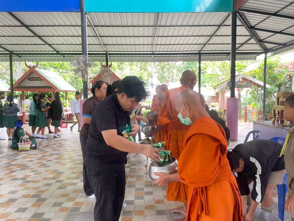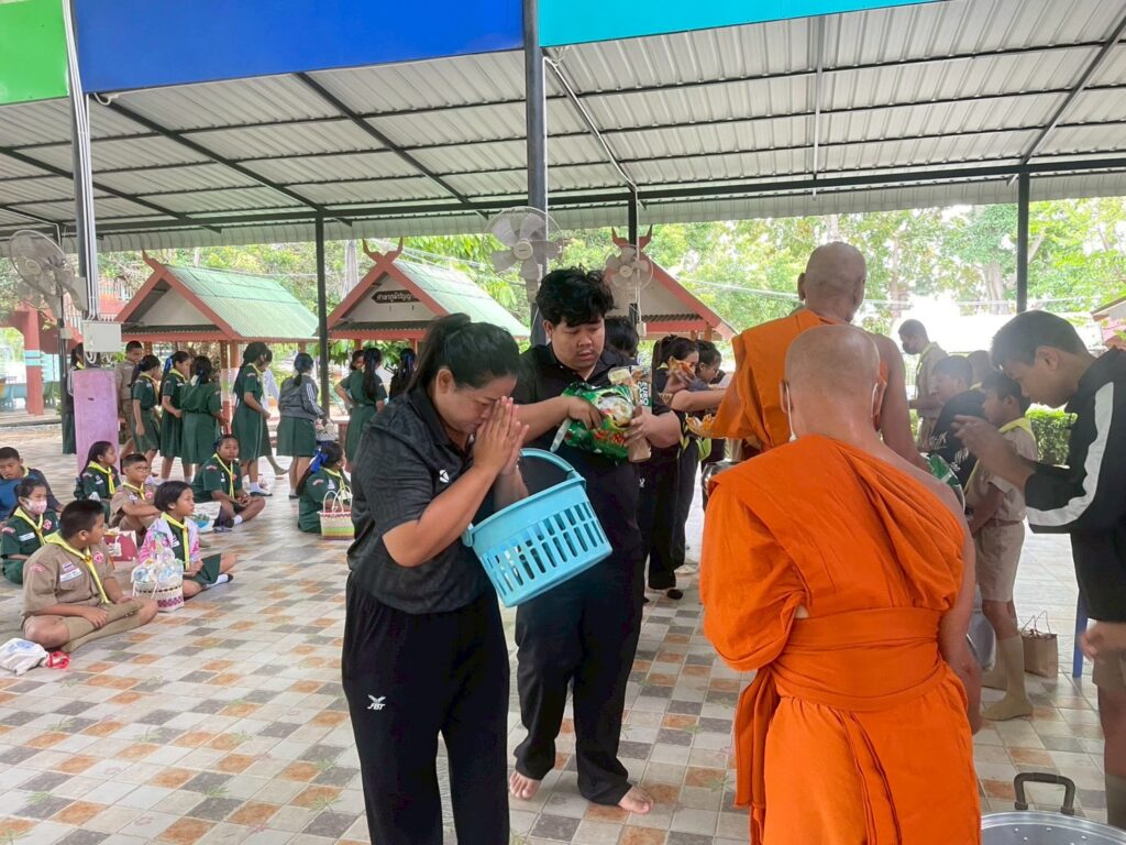 ร่วมกันตักบาตรข้าวสารอาหารแห้ง เนื่องในวันพระแรม 15 ค่ำ เดือน 12
